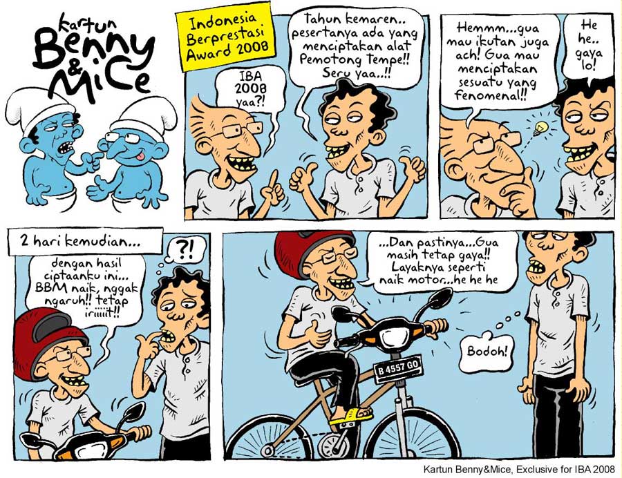 Jika dua komik diatas merupakan komik jadul, Benny & Mice merupakan komik yang bisa dibilang masih baru. Benny & Mice sendiri merupakan komik strip yang mampu mengembalikan dunia komik ke ranah mainstream. Dalam komiknya, seniman ini kerap melontarkan sindiran-sindiran cerdas dan memberikan cara pandang berbeda terkait isu sosial terbaru dengan penyajian ringan dan tentu saja lucu.