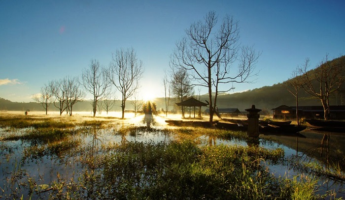 Danau Tamblingan merupakan sebuah danau kecil yang memiliki nilai spiritual yang sangat tinggi. Di danau yang masih sangat alami ini, kamu akan disuguhi oleh beragam keindahan alam yang menggugah batin. Tidak hanya itu, di sekeliling danau juga terdapat 4 desa kecil yang dihiasi dengan sejumlah pura yang sangat kental dengan nuansa religius. O iya, di sini kendaraan bermotor dilarang masuk.