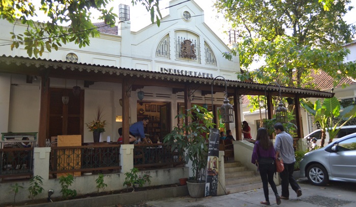Melongok ke Bandung, di sini ada Indischetafel Bandung yang terletak di Jalan Sumatra 19 Bandung. Di lihat dari bangunannya, Kafe ini memang menyajikan nuansa jadul jaman Belanda. Menurut cerita, dulunya kafe ini sengaja di pertahankan bentuk keasliannya seperti ketika bangunan ini di bangun. Tidak heran jika di dalam Indischetafel Bandung, kamu akan menemukan berbagai perak pernik jadul.